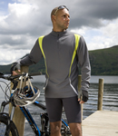 Cool-Dry© mesh panels. Breathable. Fabric is moisture wicking and quick dry. Mandarin collar. Zip neck with inner zip guard and chin guard. Contrast panel detail to front and back.